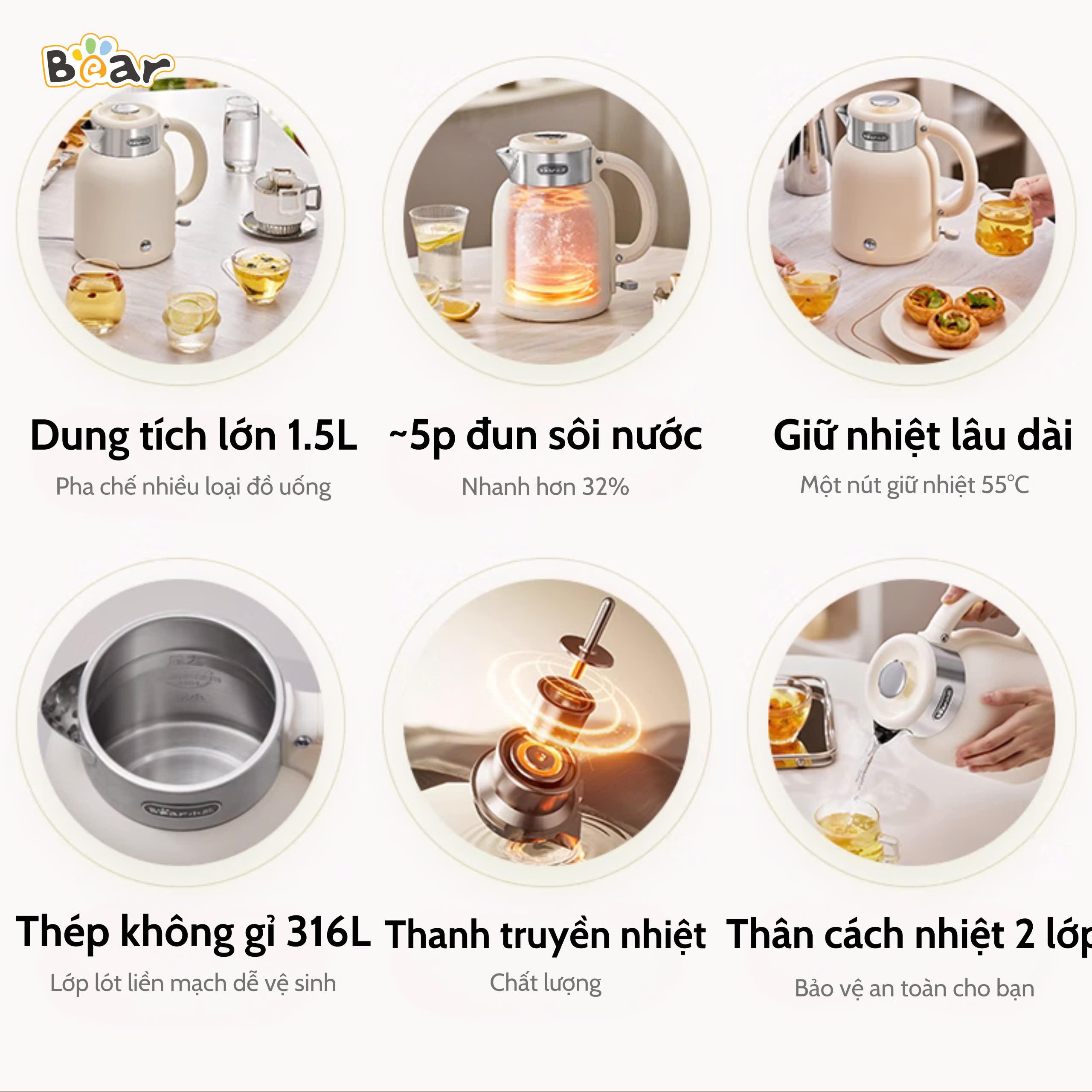 Review Ấm đun nước giữ nhiệt Bear ZDH-C15V7