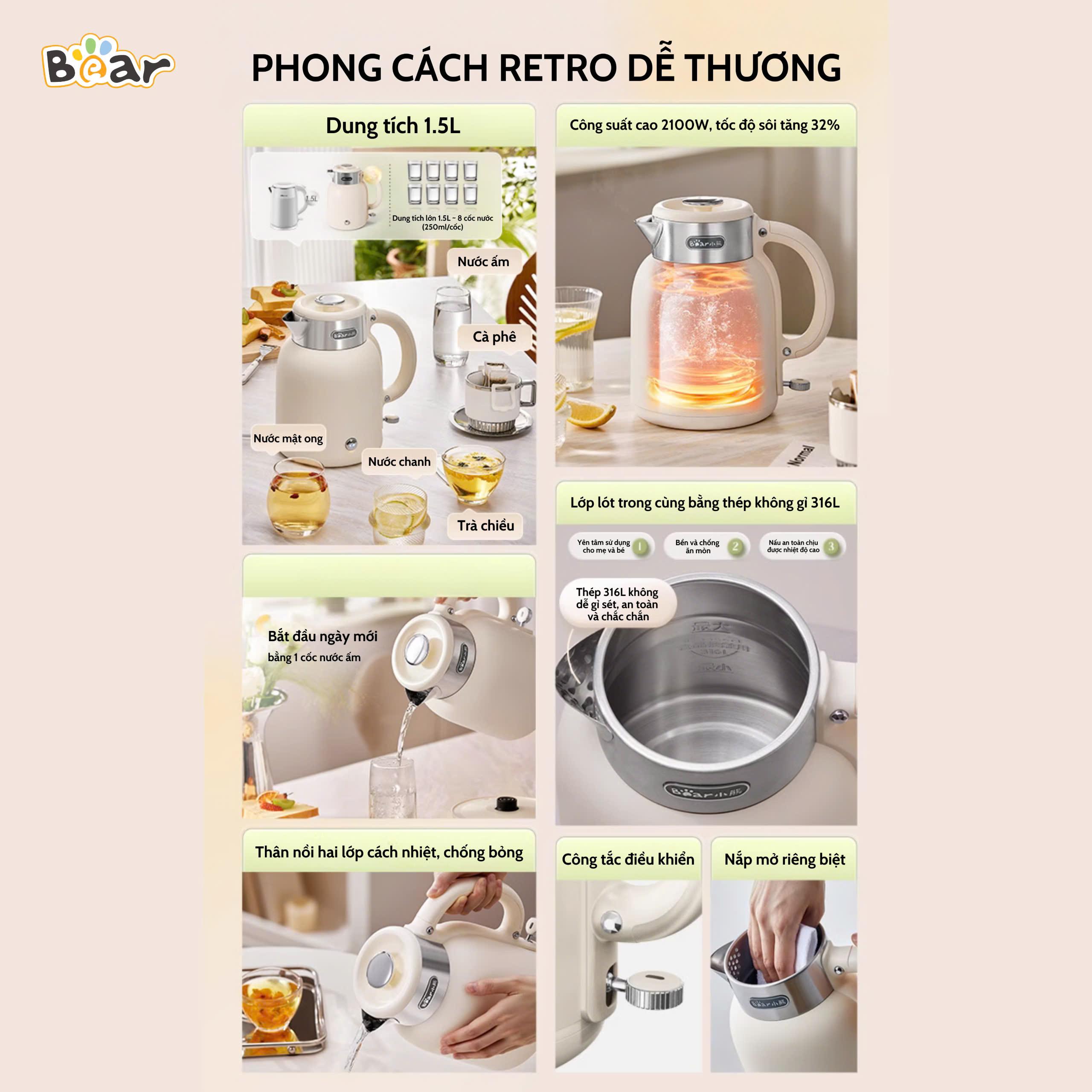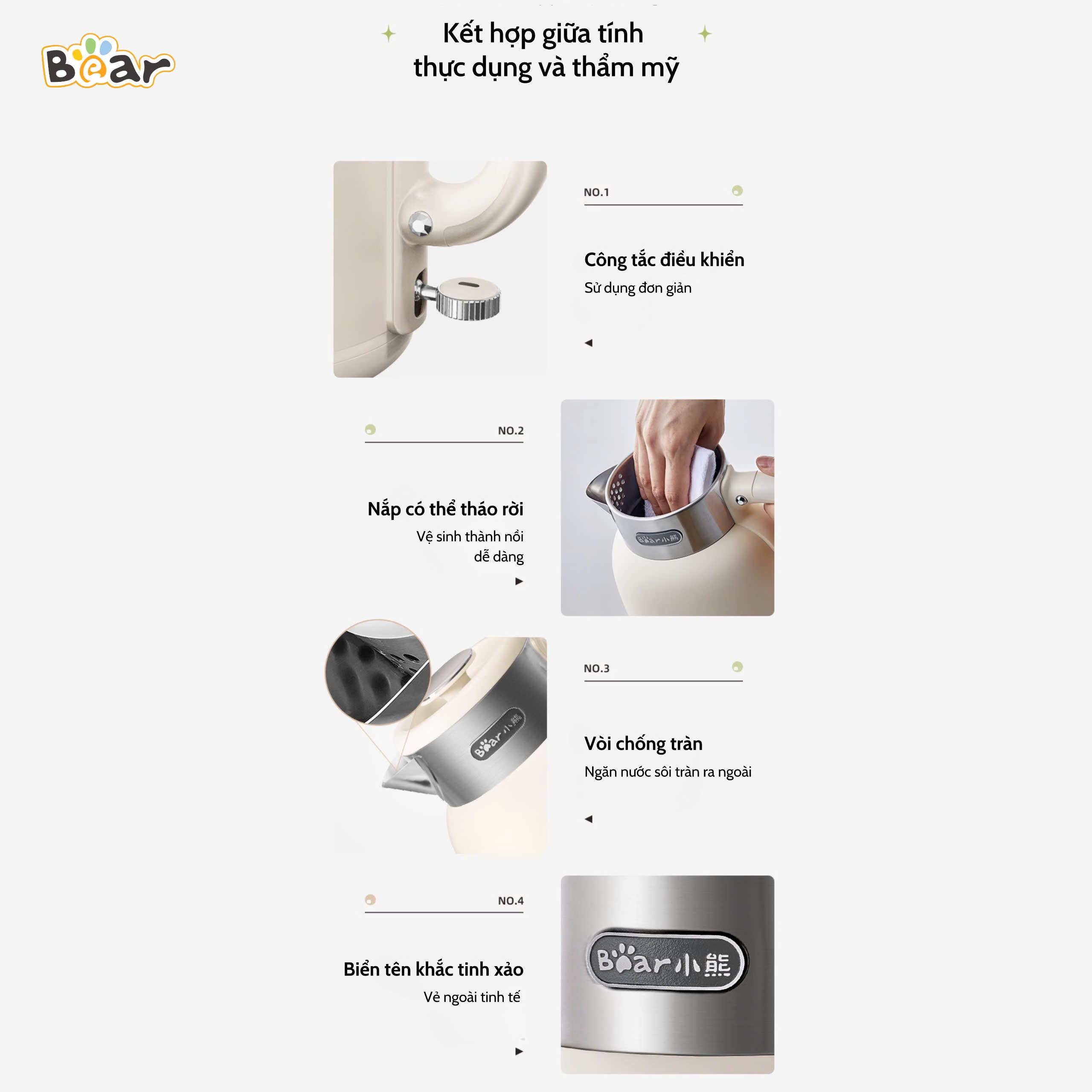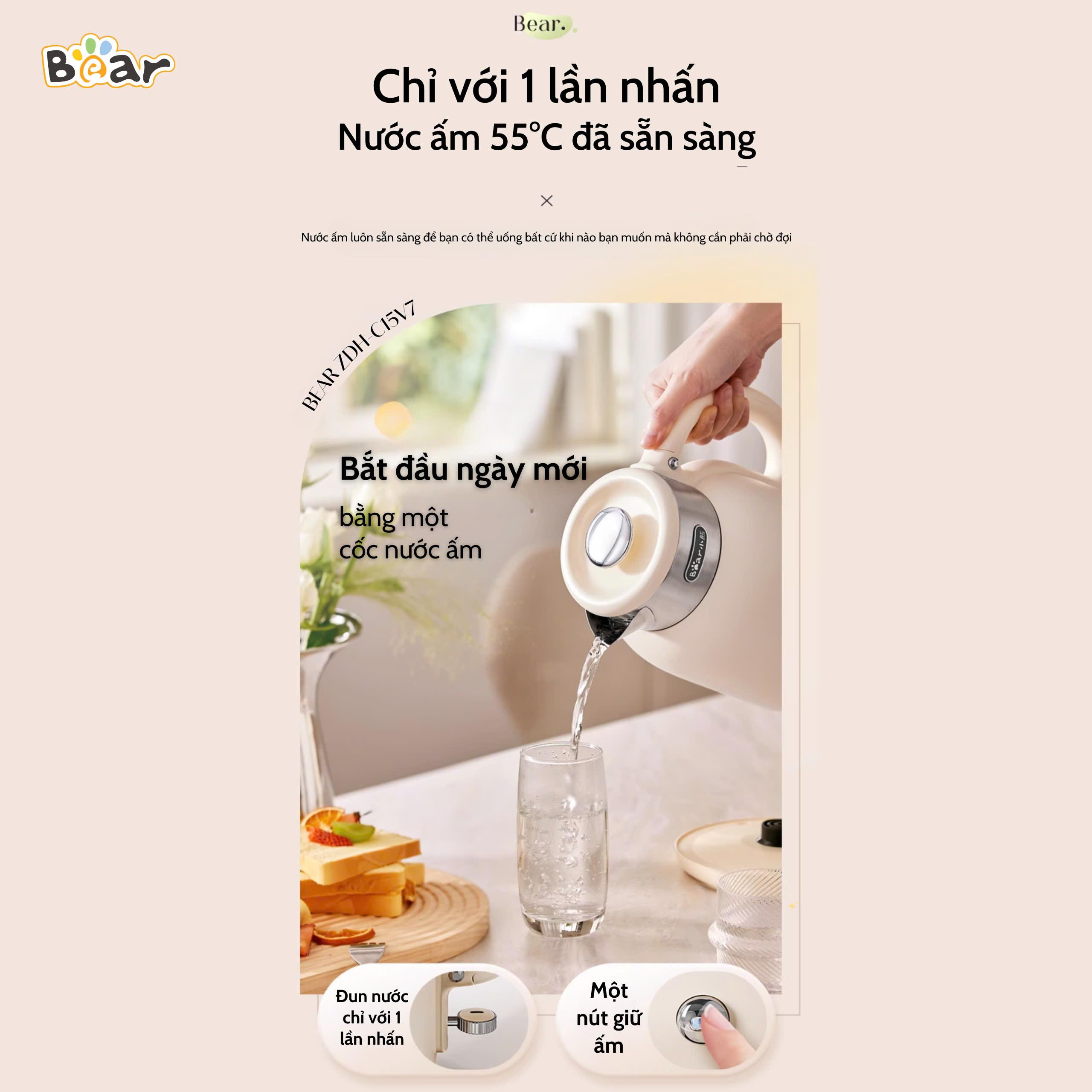Với Bear ZDH-C15V7, bạn không chỉ có một chiếc ấm đun nước thông thường mà còn là một trợ thủ đa năng, giúp cuộc sống tiện lợi và thoải mái hơn mỗi ngày.