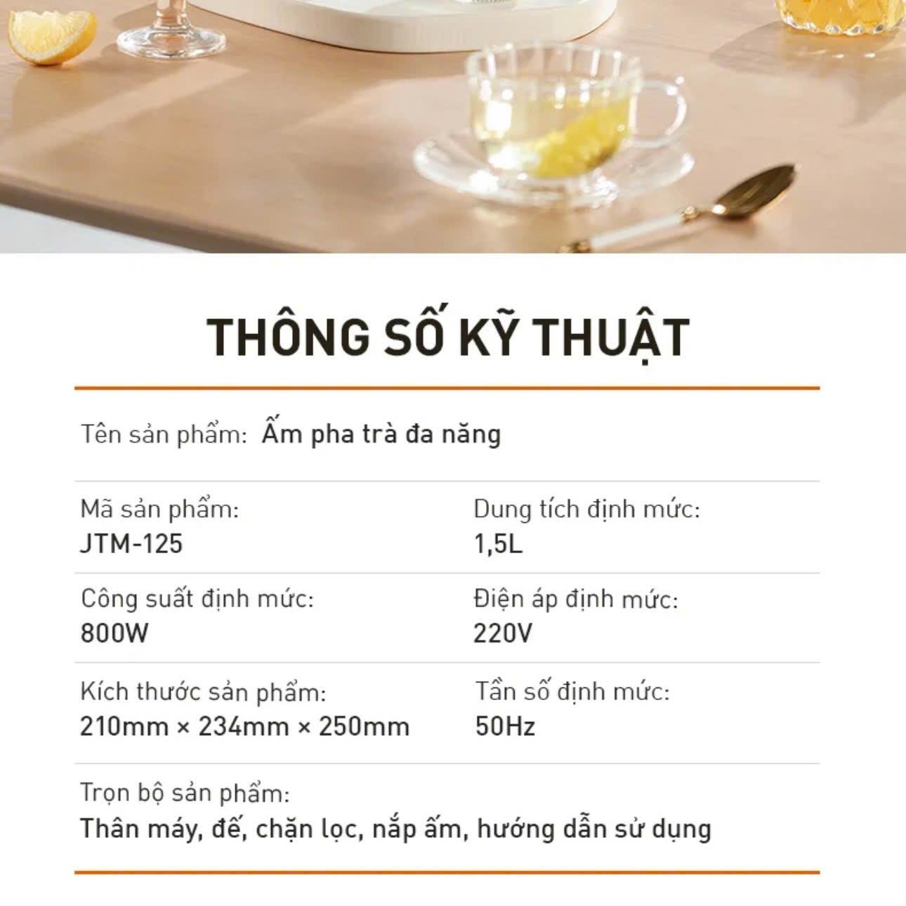 Ấm đun pha trà đa năng Joyoung JTM-125 là lựa chọn hoàn hảo cho những ai yêu thích thưởng trà mỗi ngày. Với thiết kế tinh tế, dung tích 1.5L và công suất 800W, sản phẩm giúp nước sôi nhanh chóng, giữ hương vị trà luôn thơm ngon, chuẩn vị.