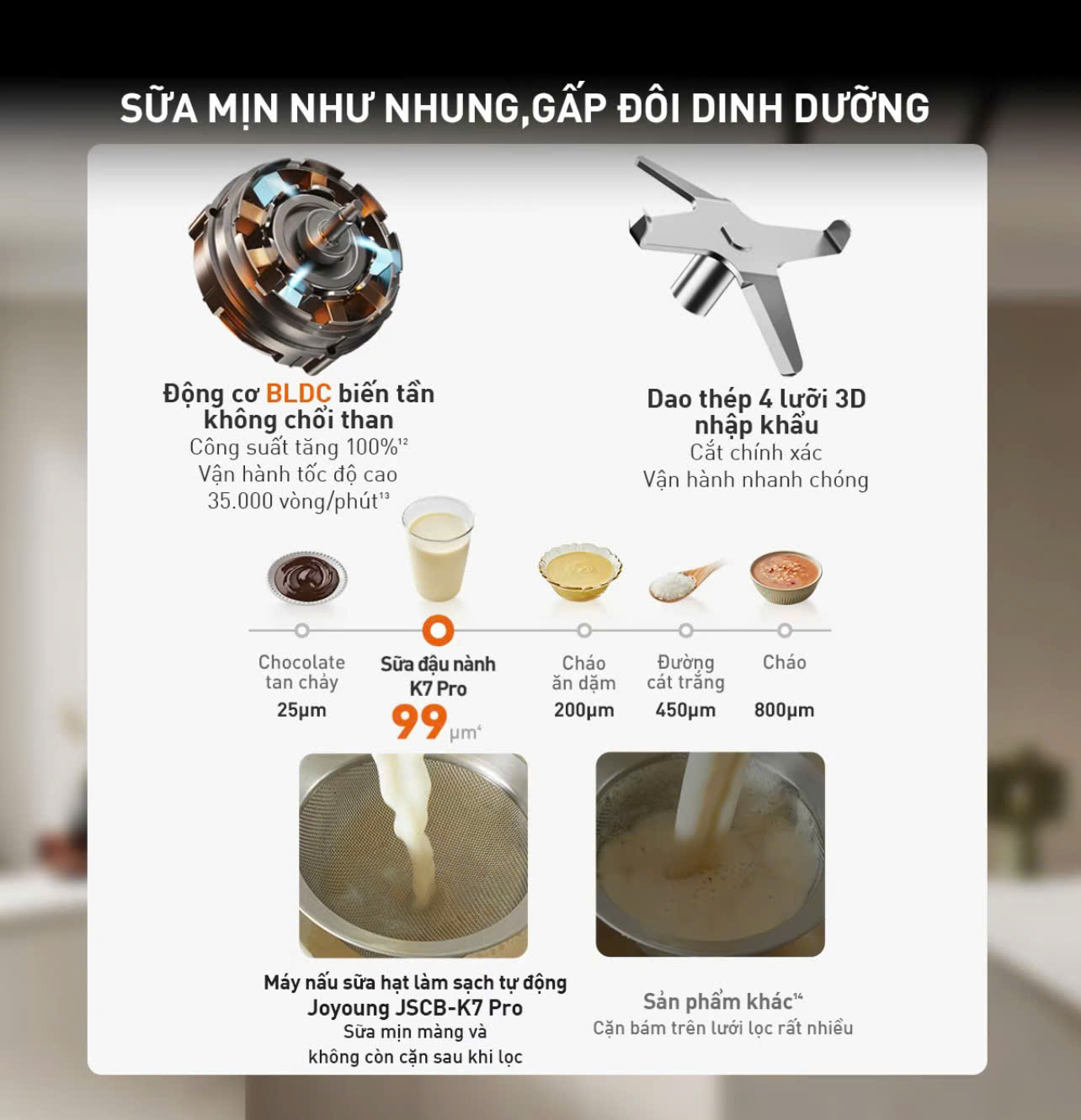 Joyoung JSCB-K7 PRO – Máy nấu sữa hạt thông minh, sạch tự động, giảm purin, có trợ lý giọng nói, mang đến những ly sữa thơm ngon, an toàn cho sức khỏe gia đình mỗi ngày.
