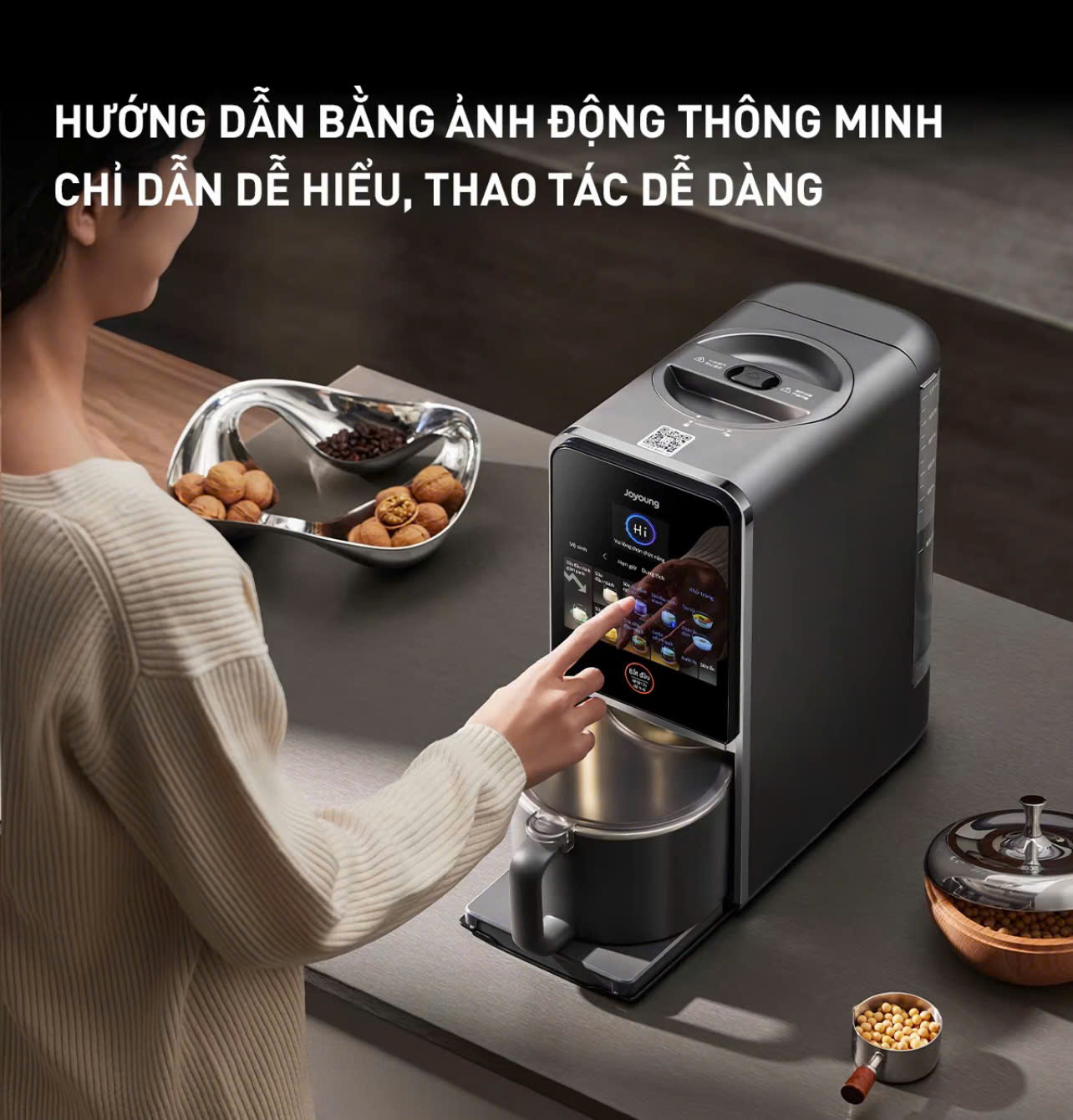 • Màn hình màu sắc sống động, chỉ cần một chạm là bắt đầu chế biến sữa hạt.