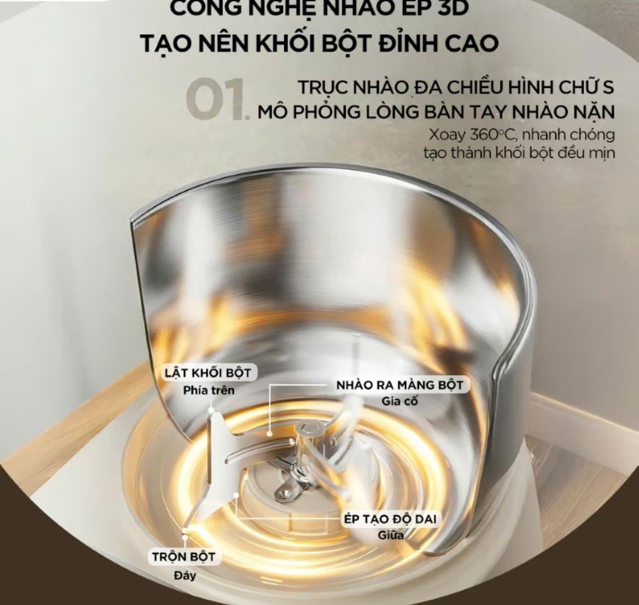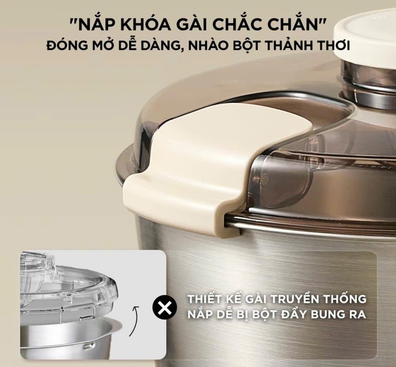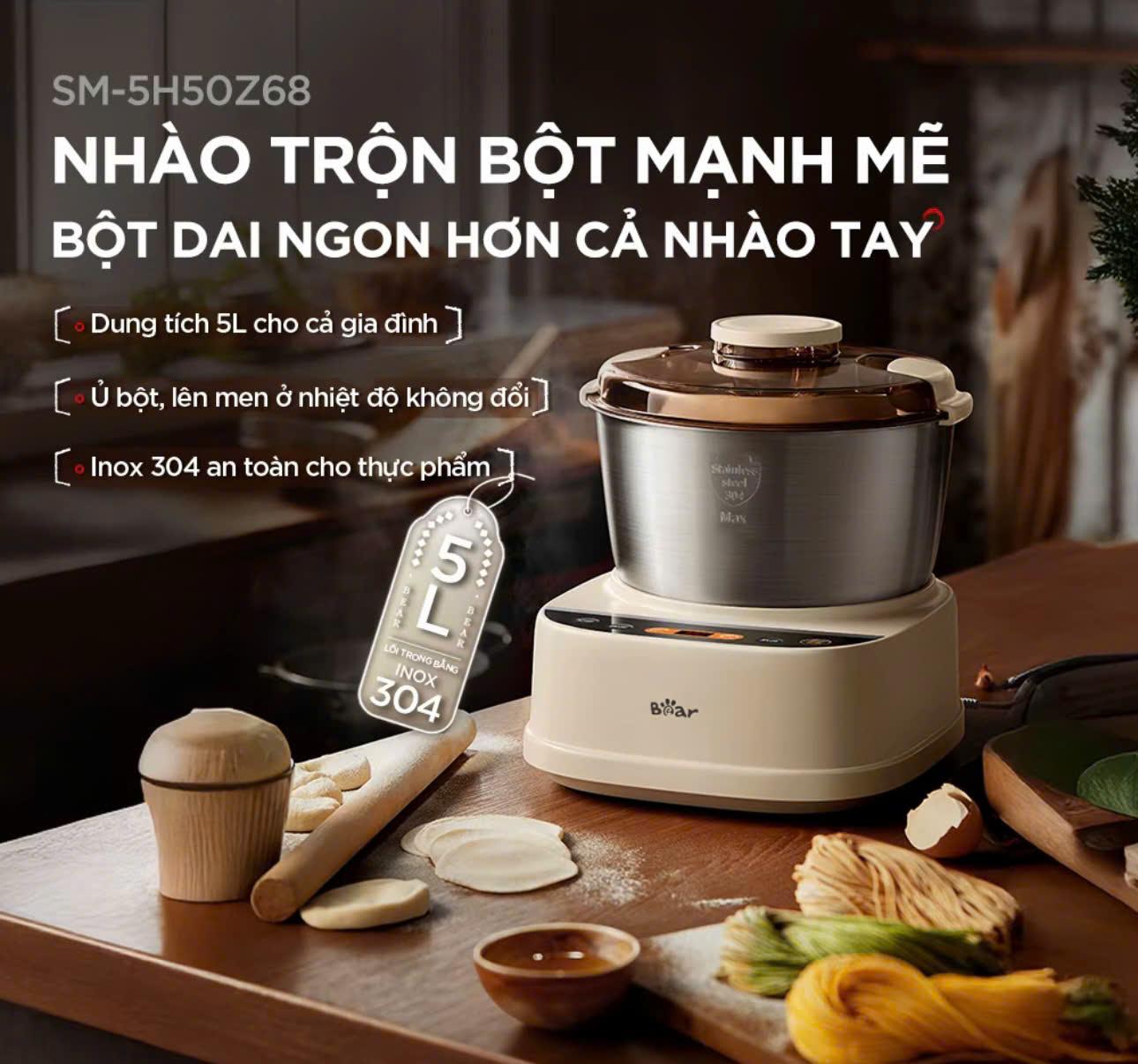 Đa năng vượt trội: Tự động nhồi và ủ bột, có chức năng hẹn giờ nhồi và nghỉ bột, giúp bạn chủ động trong mọi công đoạn.