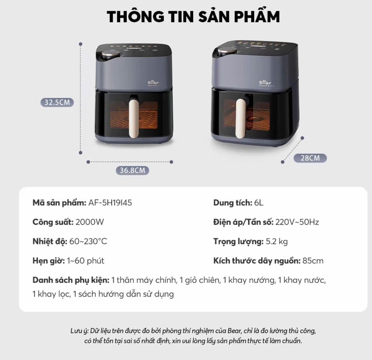 Review Nồi chiên không dầu 6L Bear AF-5H19I45
