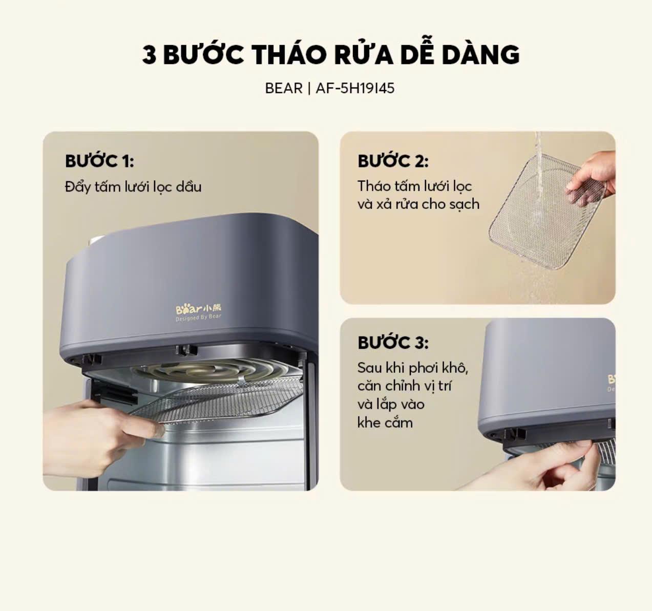 Trải nghiệm phong cách nấu ăn hiện đại – lành mạnh – tiện lợi cùng nồi chiên không dầu Bear AF-5H19I45