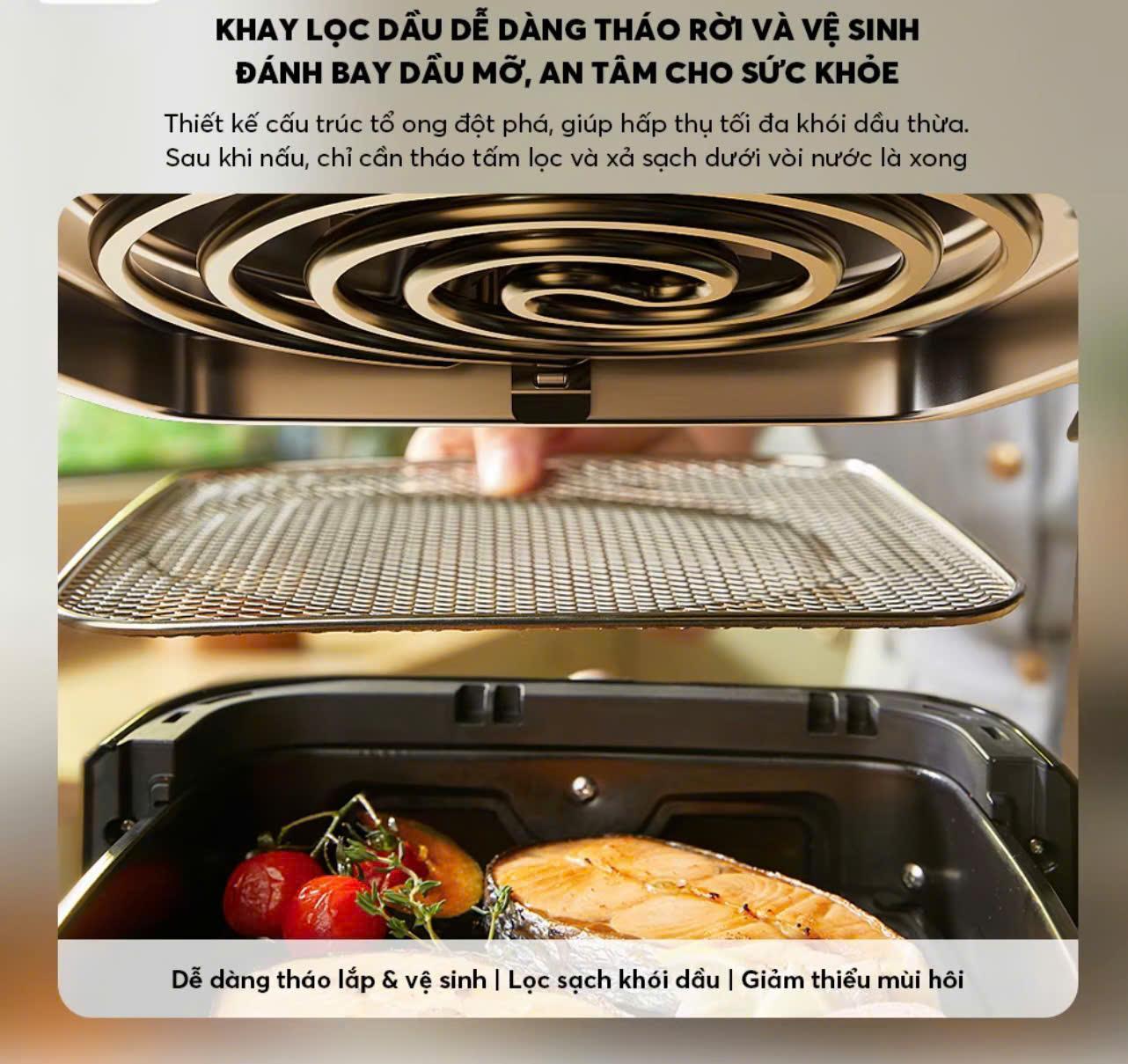 Ăn ngon, sống khỏe: Giảm đến 85% lượng dầu mỡ so với chiên truyền thống.